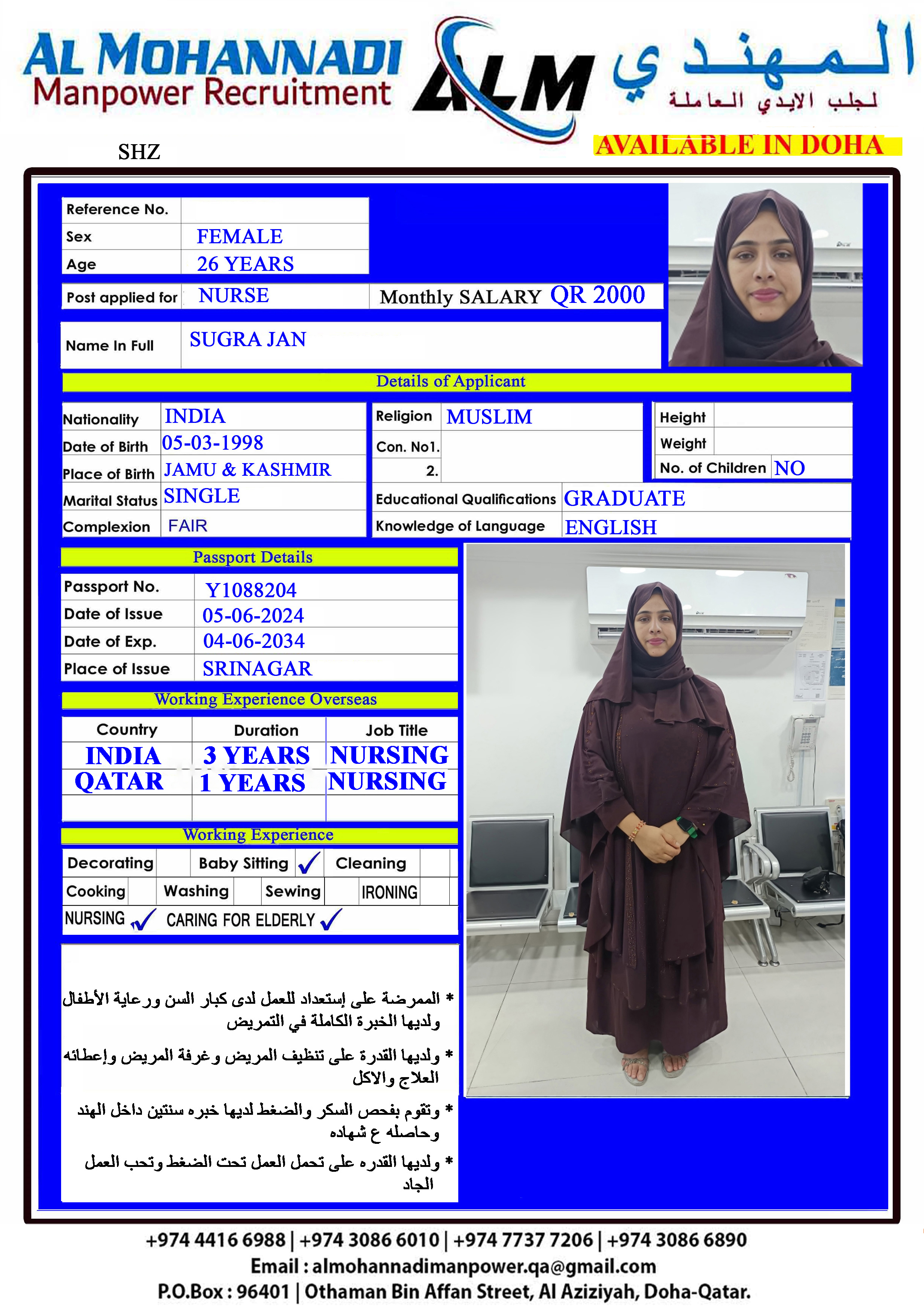 Welcome Are you looking for a driver, nurse, house manager, cleaner, nanny, secretary, professional workers for companies, security and guard personnel, foreman .... etc. Have you spent a long time looking for a maid? Have you made a great effort to find the right person? But to no avail ... Don't worry, we have the perfect solution to your problem Services…