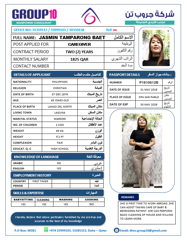 Name - English JASMIN TAMPARONG BAET