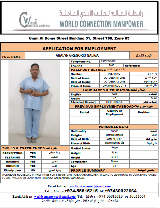 Welcome Are you looking for a driver, nurse, house manager, cleaner, nanny, secretary, professional workers for companies, security and guard personnel, foreman .... etc. Have you spent a long time looking for a maid? Have you made a great effort to find the right person? But to no avail ... Don't worry, we have the perfect solution to your problem Services…