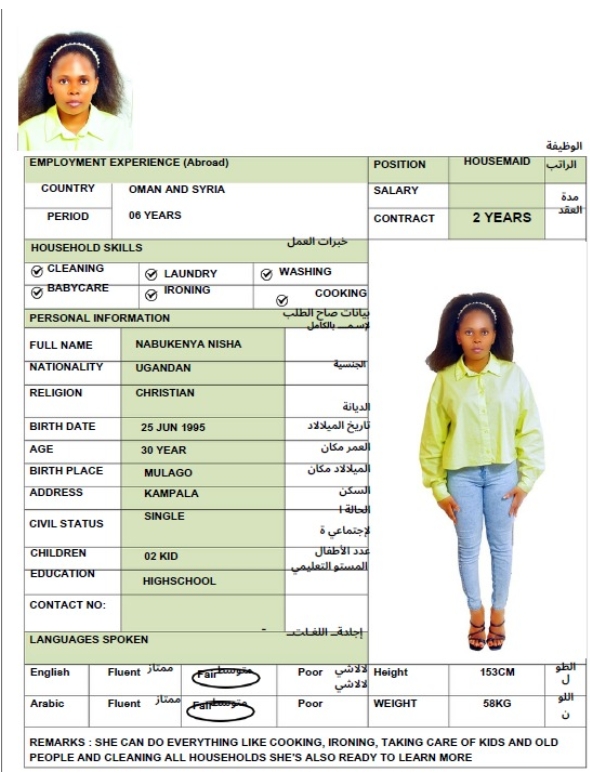 SHE CAN DO CLEANING. WASHING. IRONING. BABYCARE