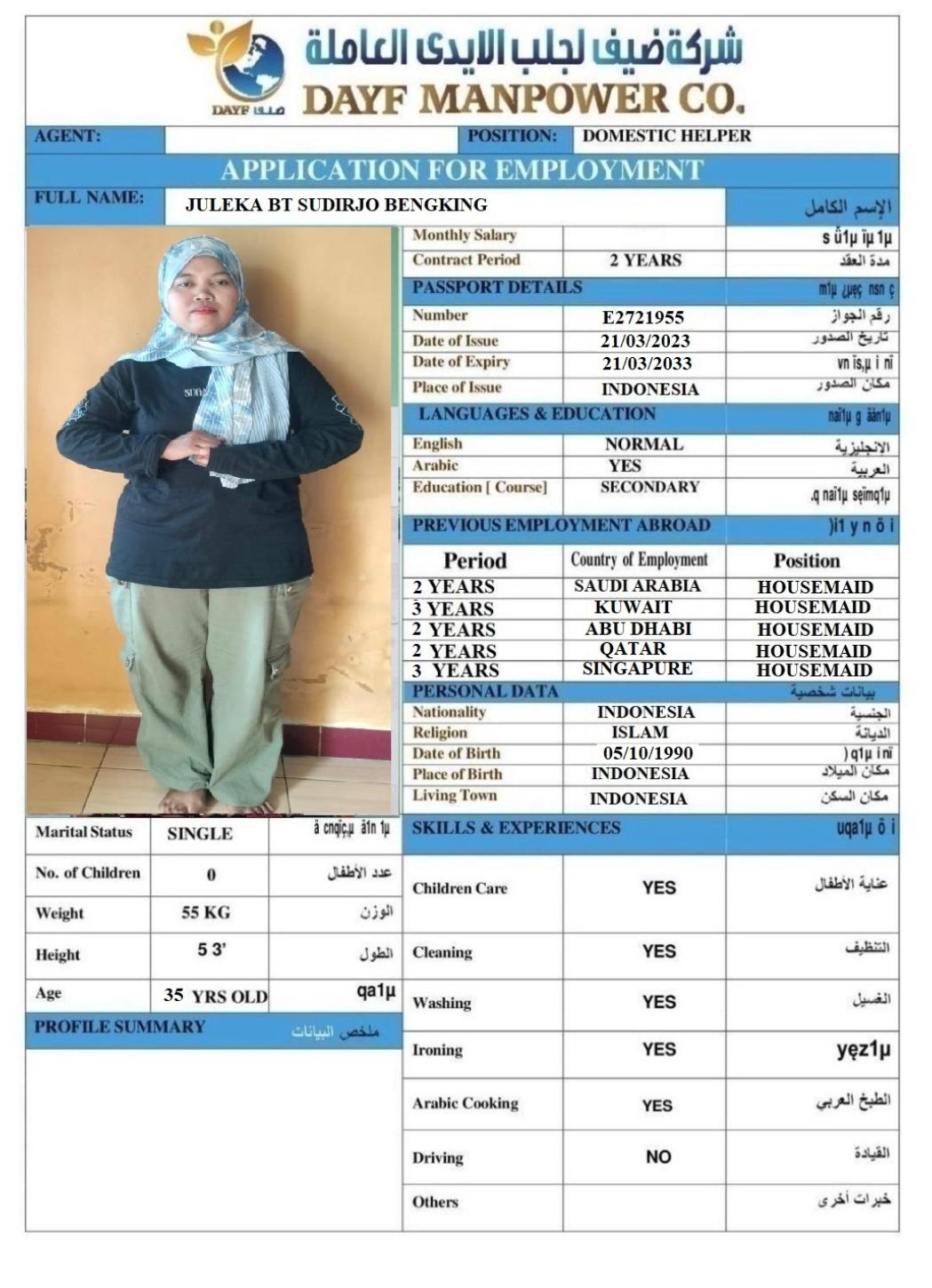 Name - English JULEKA BT SUDIRJO