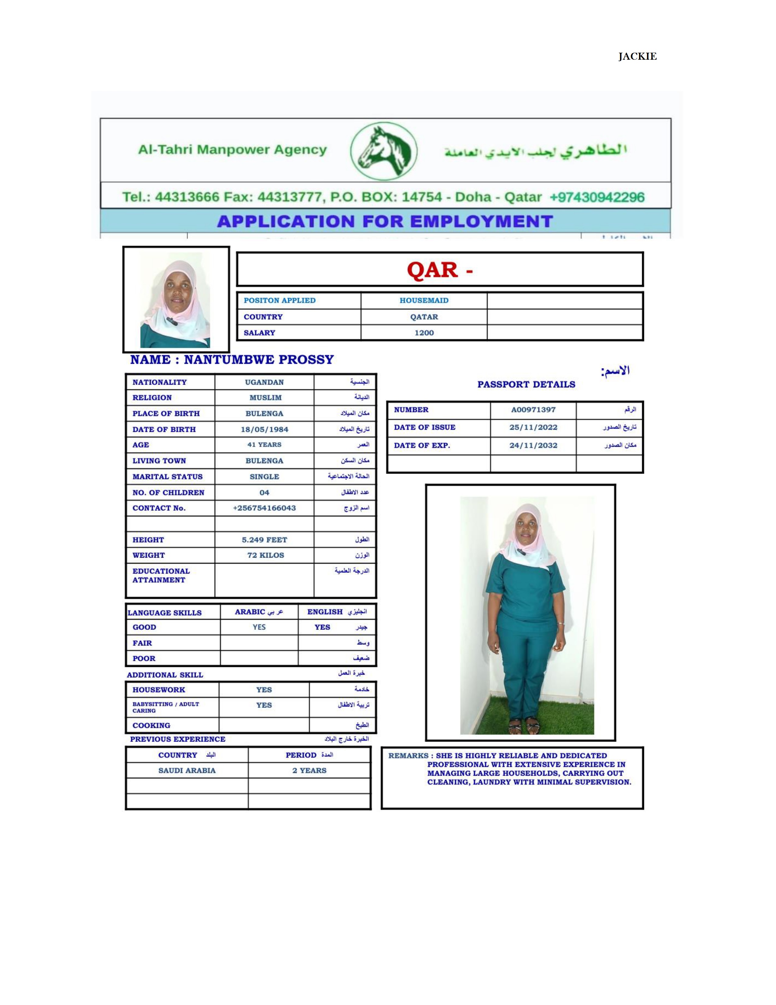 Name - English PROSSY NANTUMBWE