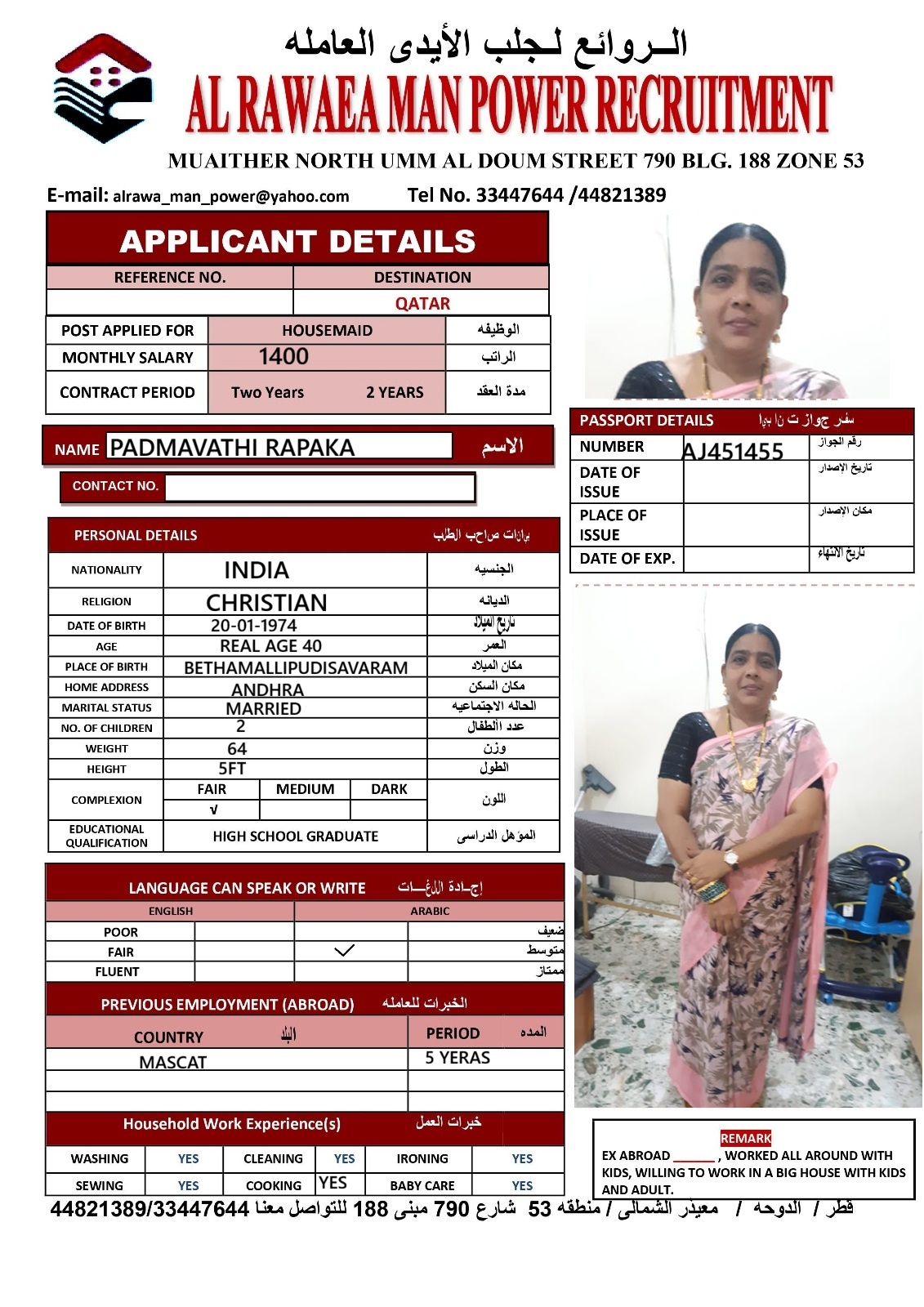 Address الدوحه / معيذر الشمالى / شارع ام الدوم منطقه 53 شارع 790 مبنى 188