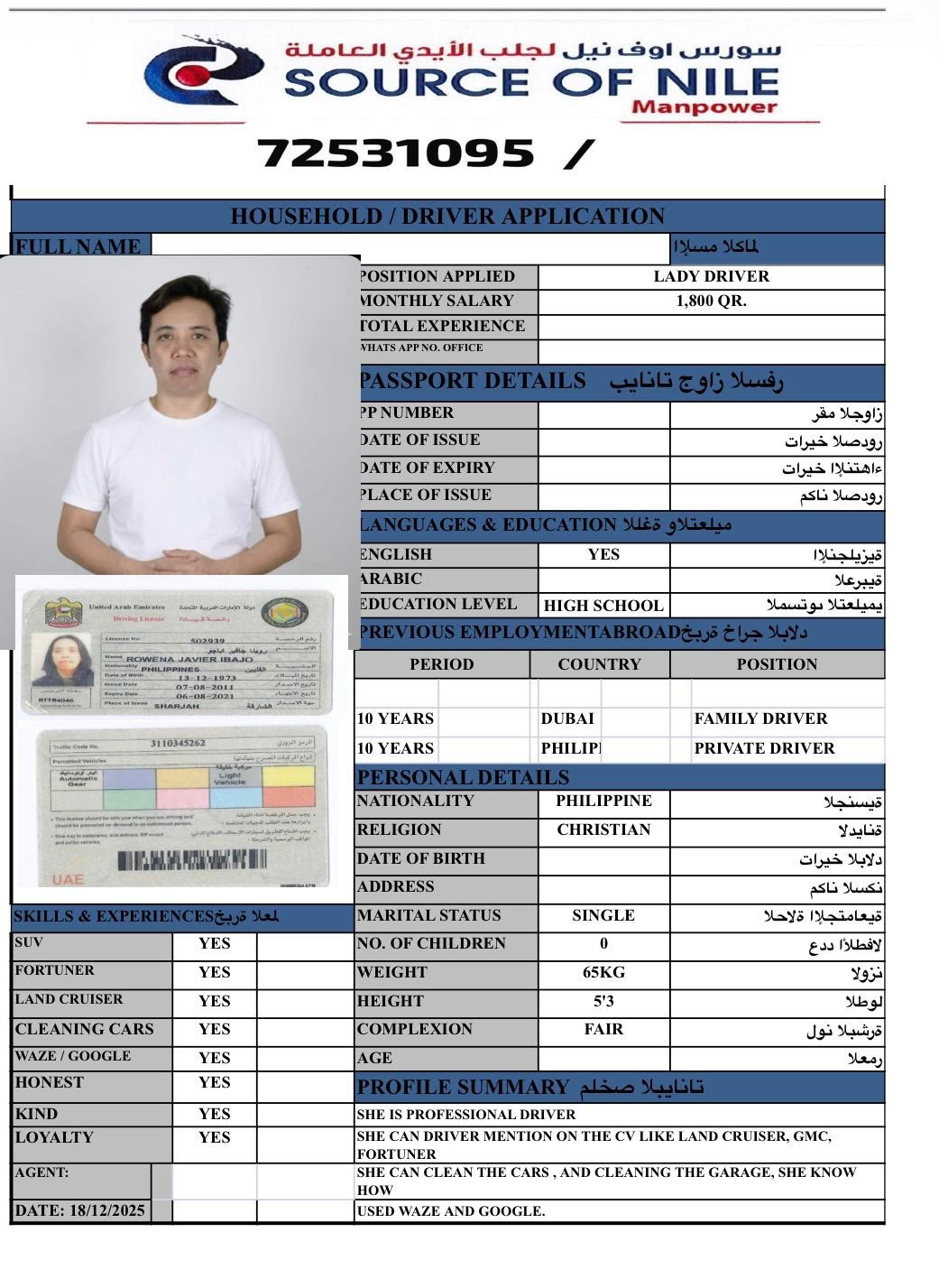 Welcome Are you looking for a driver, nurse, house manager, cleaner, nanny, secretary, professional workers for companies, security and guard personnel, foreman .... etc. Have you spent a long time looking for a maid? Have you made a great effort to find the right person? But to no avail ... Don't worry, we have the perfect solution to your problem Services…