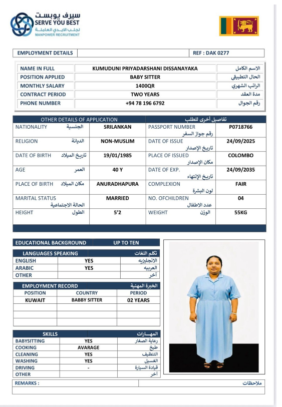 Welcome Are you looking for a driver, nurse, house manager, cleaner, nanny, secretary, professional workers for companies, security and guard personnel, foreman .... etc. Have you spent a long time looking for a maid? Have you made a great effort to find the right person? But to no avail ... Don't worry, we have the perfect solution to your problem Services…