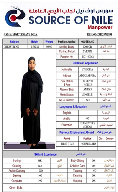 Name - English EBSE TESFAYE DIDA