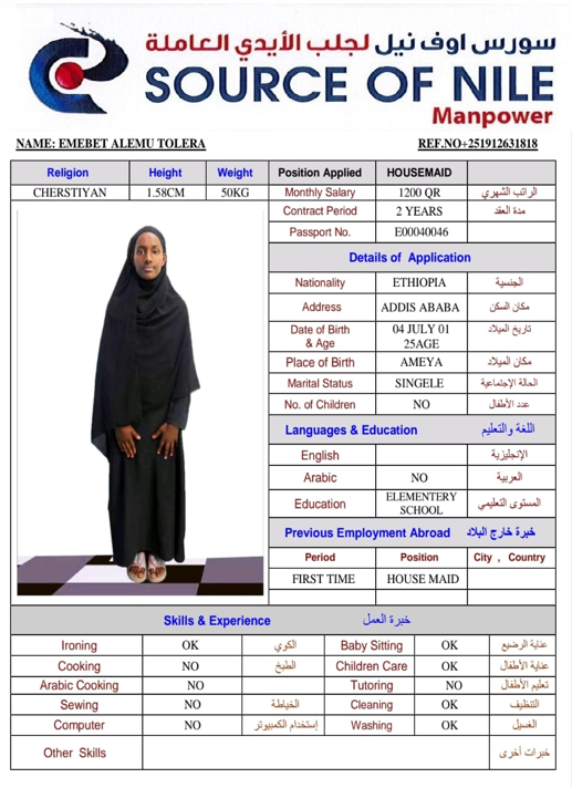 Name - English EMEBET ALEMU TOLERA