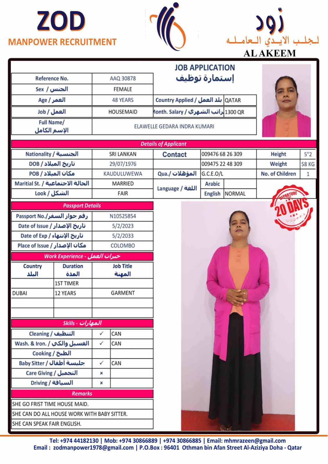 Name - English first time ELAWELLE GEDARA INDRA KUMARI 22