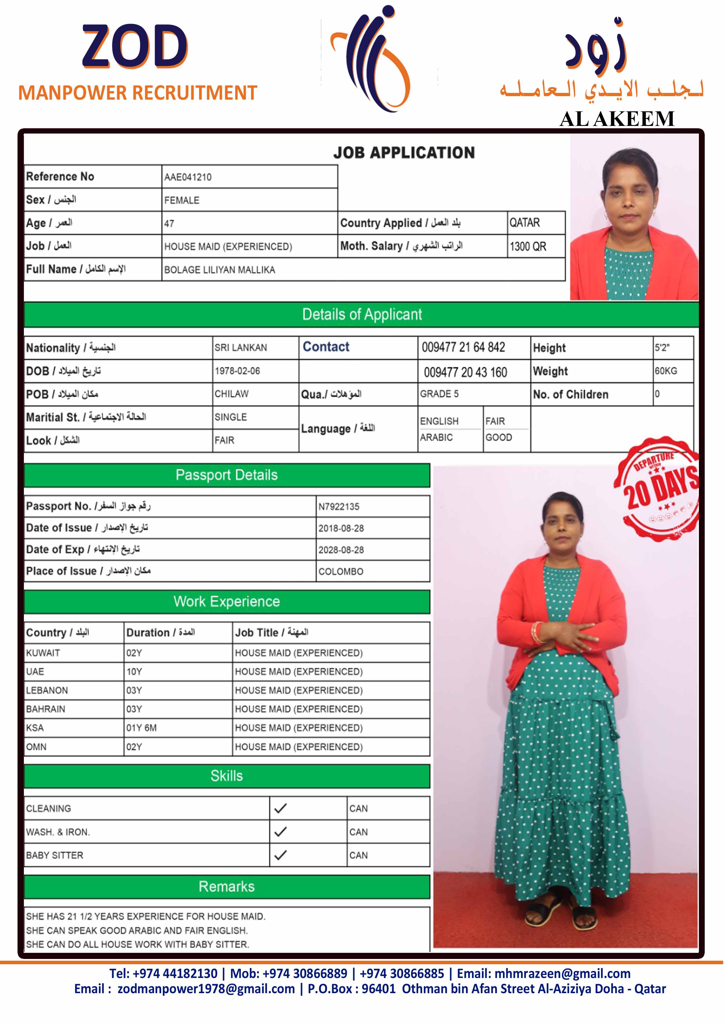 Name - English LILIYAN MALLIKA BOLAGE 23