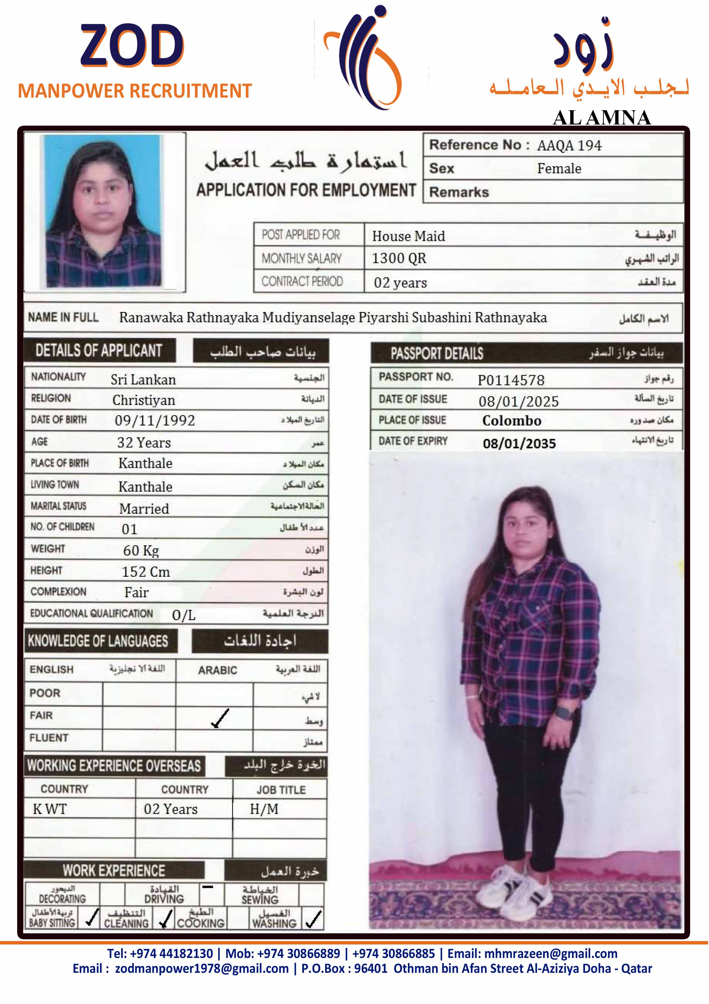 Name - English PIYARSHI SUBASHINI RATHNAYAKA RANAWAKA RATHNAYAKA MUDIYANSELAGE 23