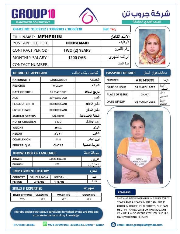 Welcome Are you looking for a driver, nurse, house manager, cleaner, nanny, secretary, professional workers for companies, security and guard personnel, foreman .... etc. Have you spent a long time looking for a maid? Have you made a great effort to find the right person? But to no avail ... Don't worry, we have the perfect solution to your problem Services…