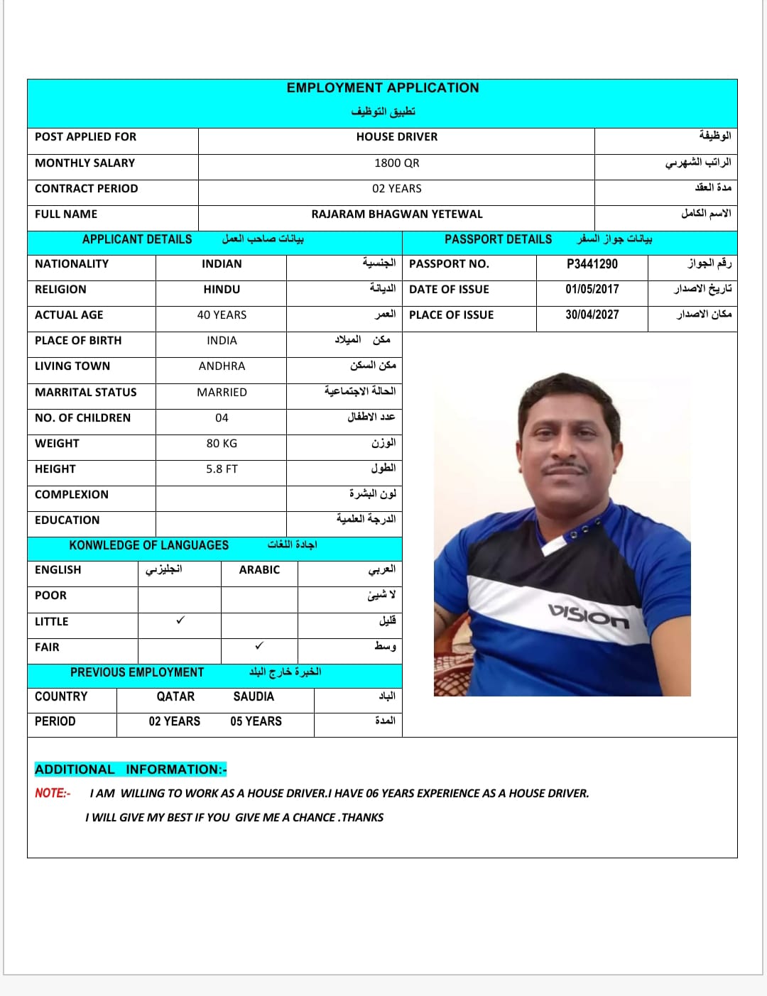 Name - English RAJARAM BHAGWAN / AVAILABLE IN DOHA