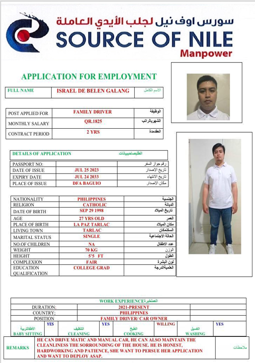 Name - English ISRAEL DE BELEN GALANG