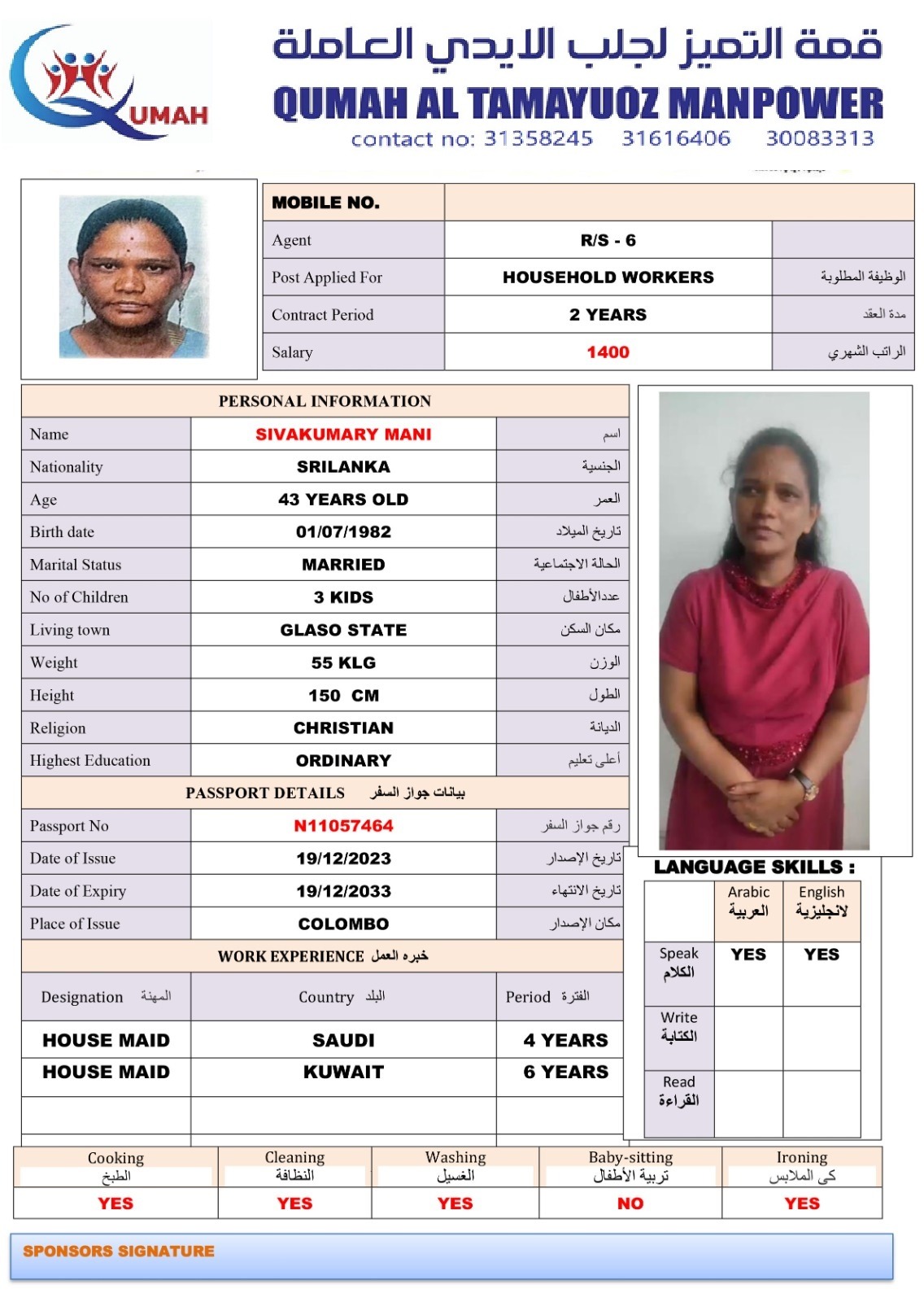 Name - English SIVAKUMARY MANI