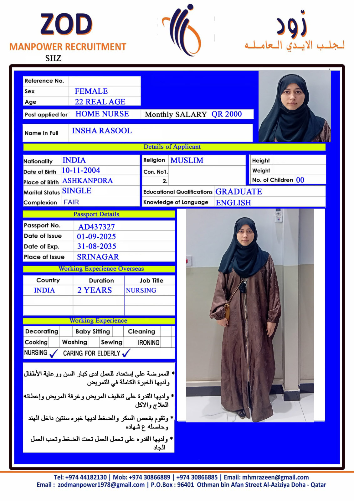 Welcome Are you looking for a driver, nurse, house manager, cleaner, nanny, secretary, professional workers for companies, security and guard personnel, foreman .... etc. Have you spent a long time looking for a maid? Have you made a great effort to find the right person? But to no avail ... Don't worry, we have the perfect solution to your problem Services…