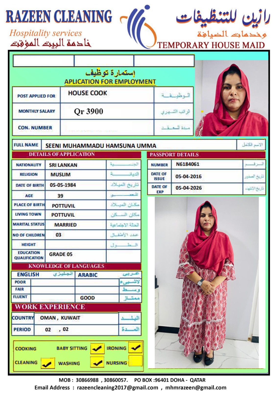Welcome Are you looking for a driver, nurse, house manager, cleaner, nanny, secretary, professional workers for companies, security and guard personnel, foreman .... etc. Have you spent a long time looking for a maid? Have you made a great effort to find the right person? But to no avail ... Don't worry, we have the perfect solution to your problem Services…