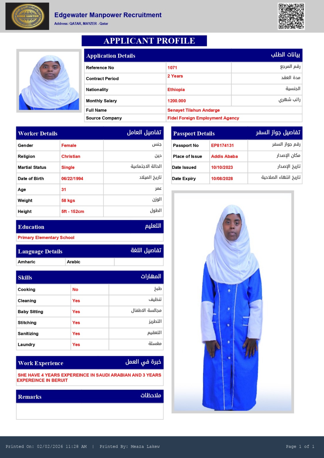 Name - English SENAYET TILAHUN ANDARGE