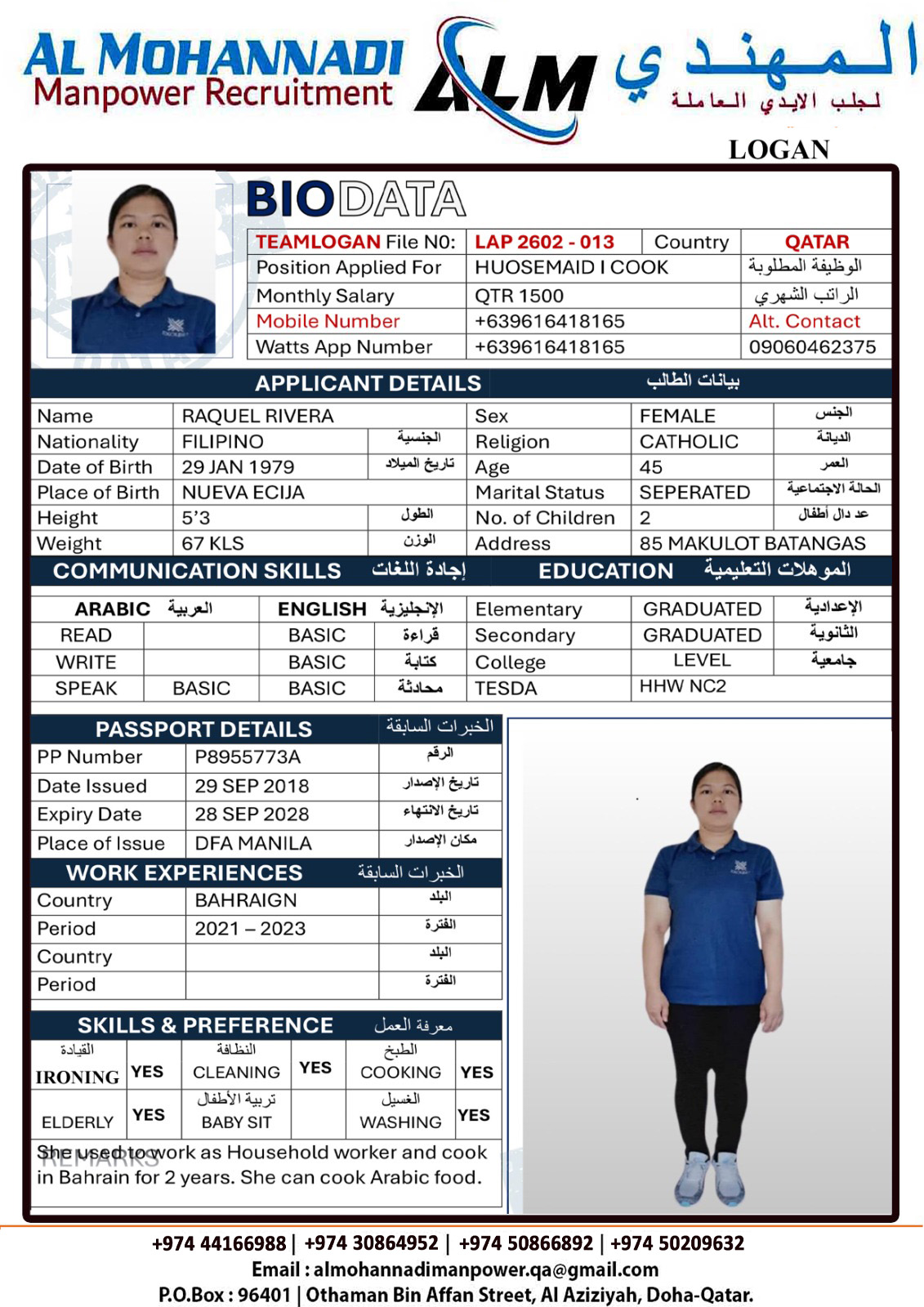 Welcome Are you looking for a driver, nurse, house manager, cleaner, nanny, secretary, professional workers for companies, security and guard personnel, foreman .... etc. Have you spent a long time looking for a maid? Have you made a great effort to find the right person? But to no avail ... Don't worry, we have the perfect solution to your problem Services…