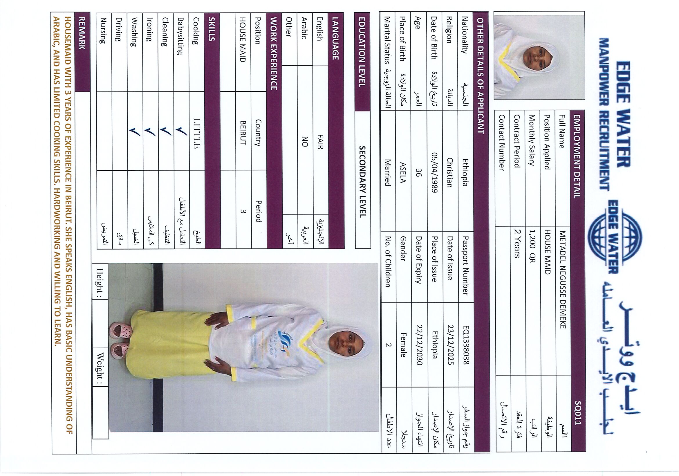 Name - English METADEL NEGUSSE DEMEKE