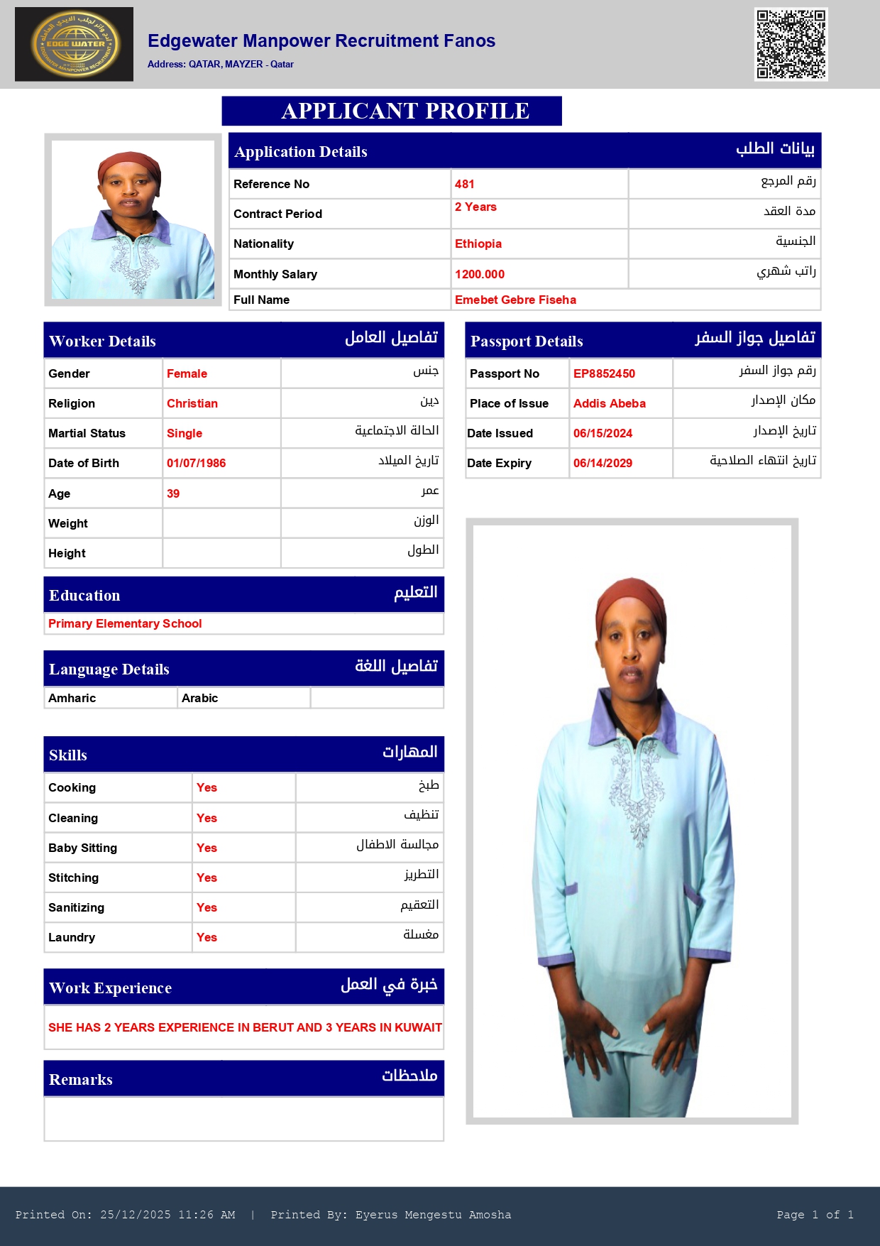 Name - English EMEBET GEBRE FISEHA