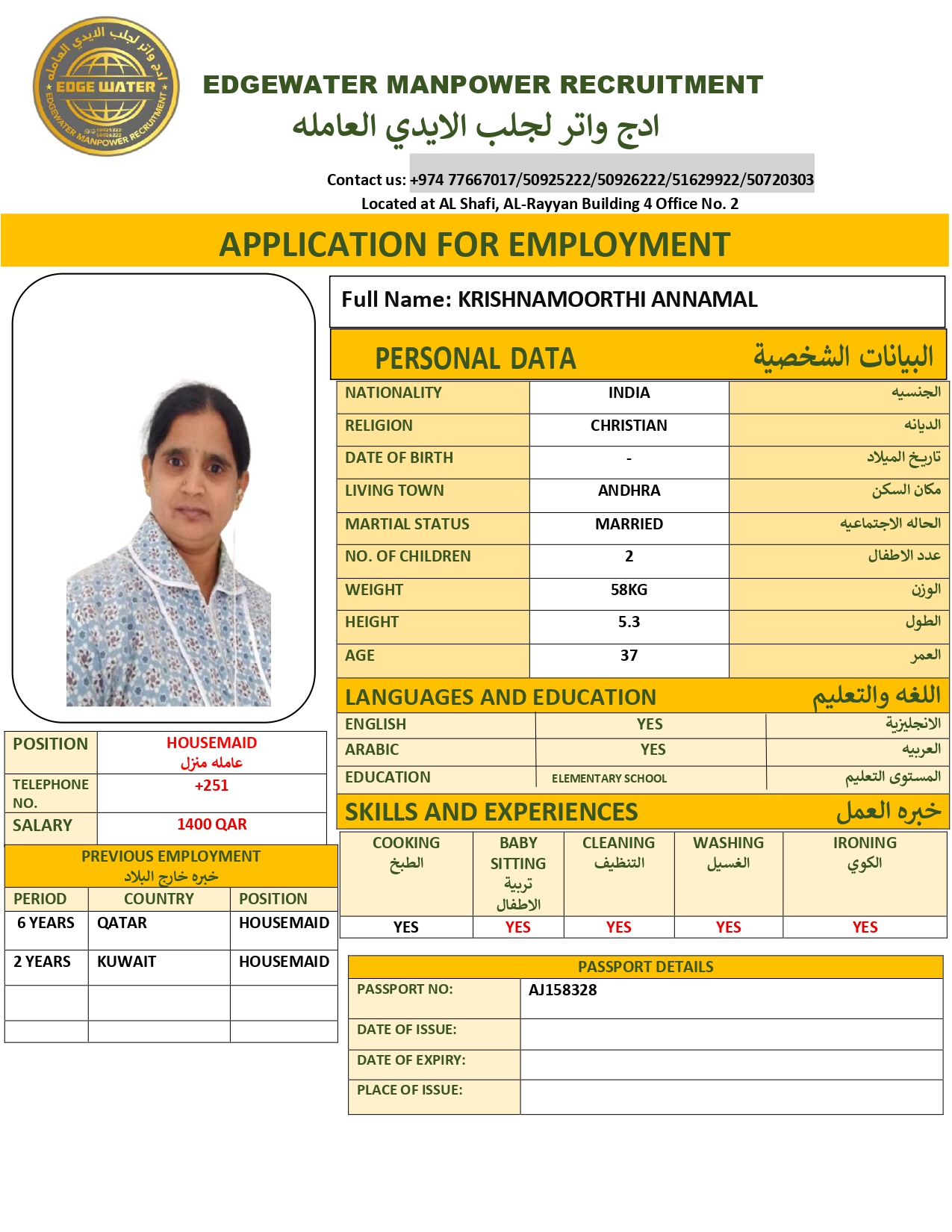 Name - English KIRSHAMOORTHI ANNAMAL
