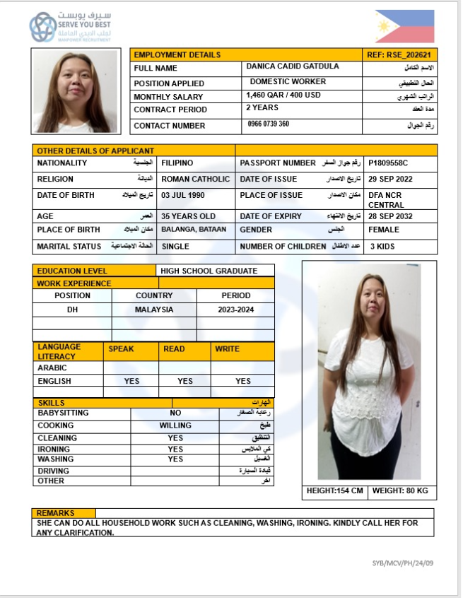Name - English DANICA CADID GATDULA