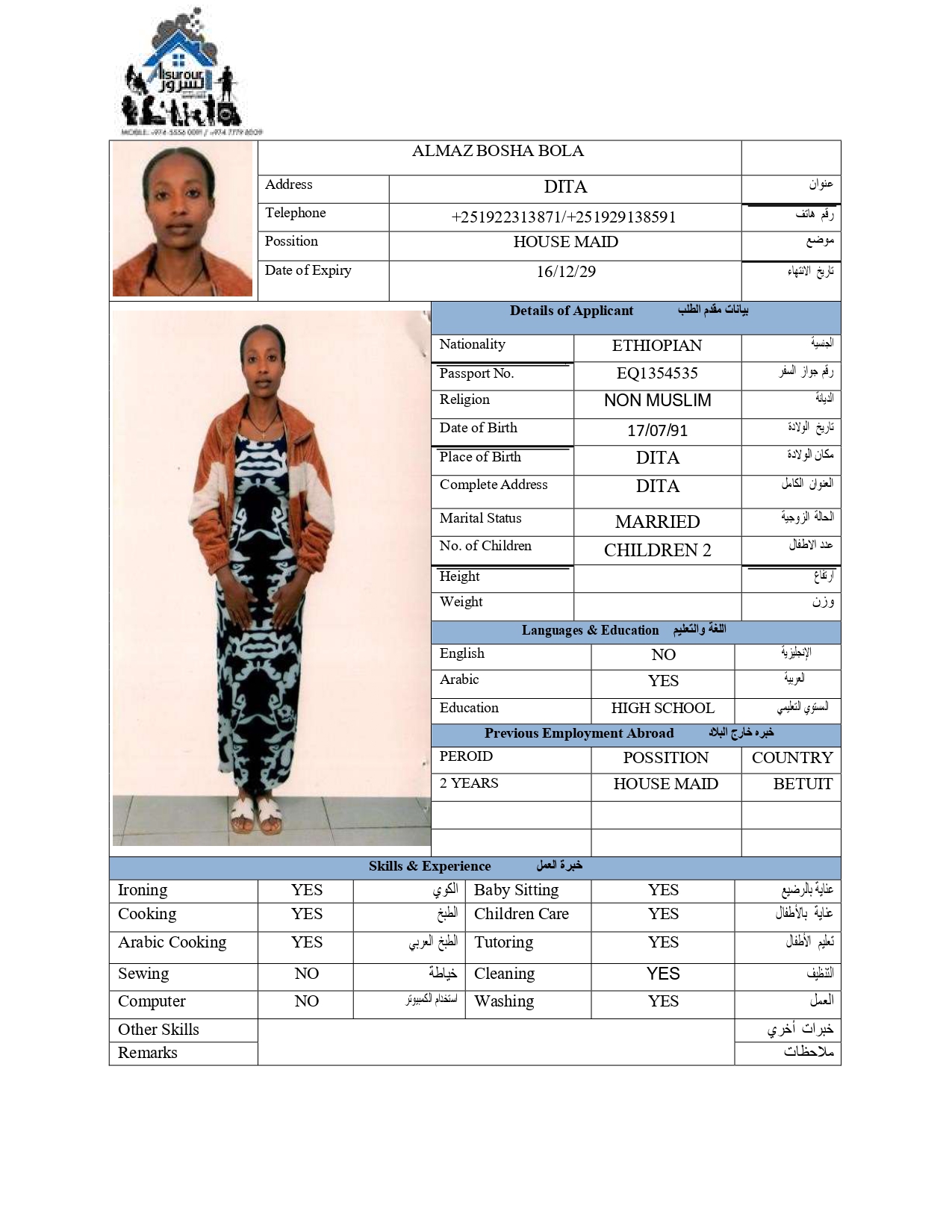 Name - English ALMAZ BOSHA