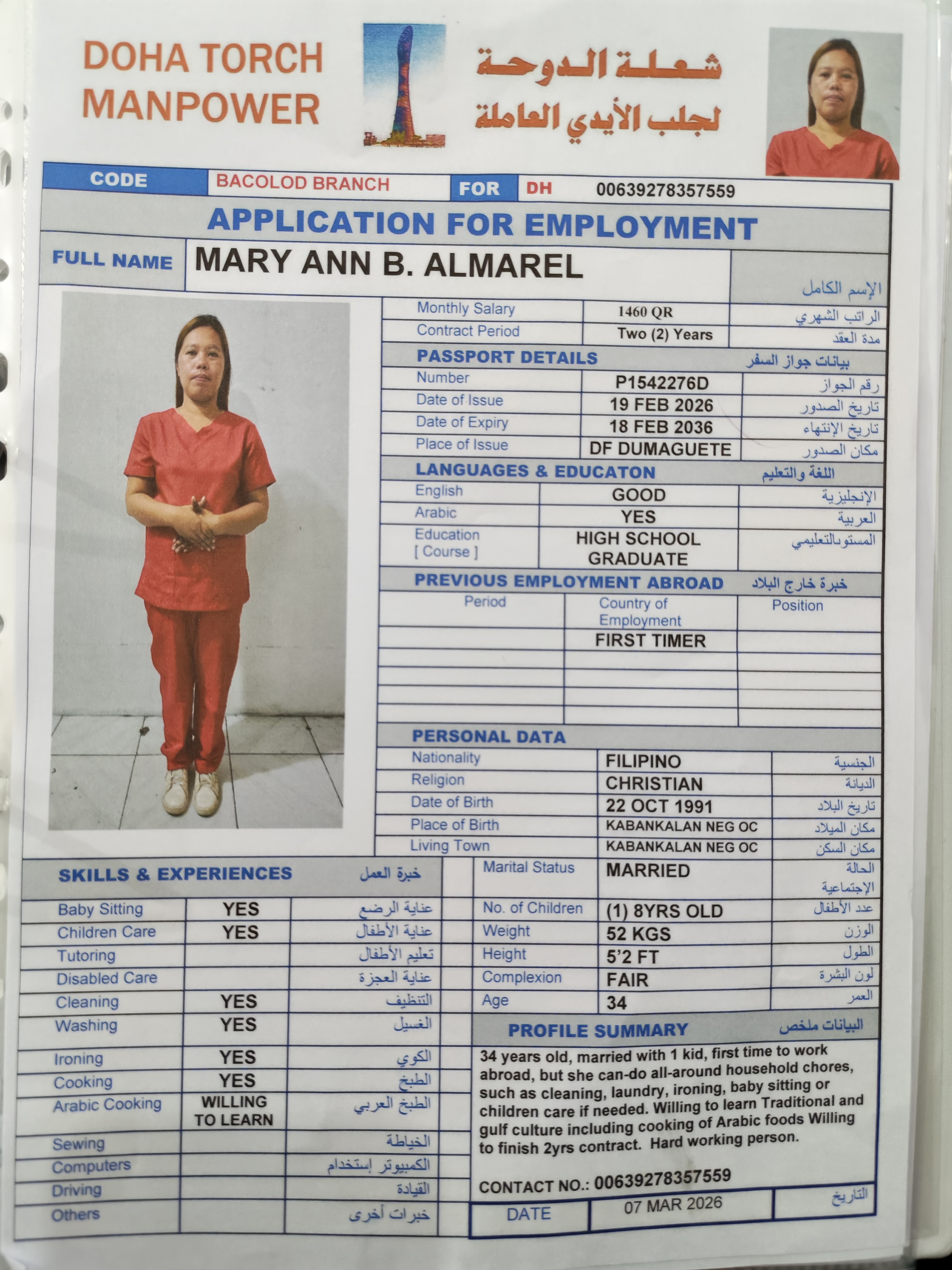 Name - English Mary ann Almarel