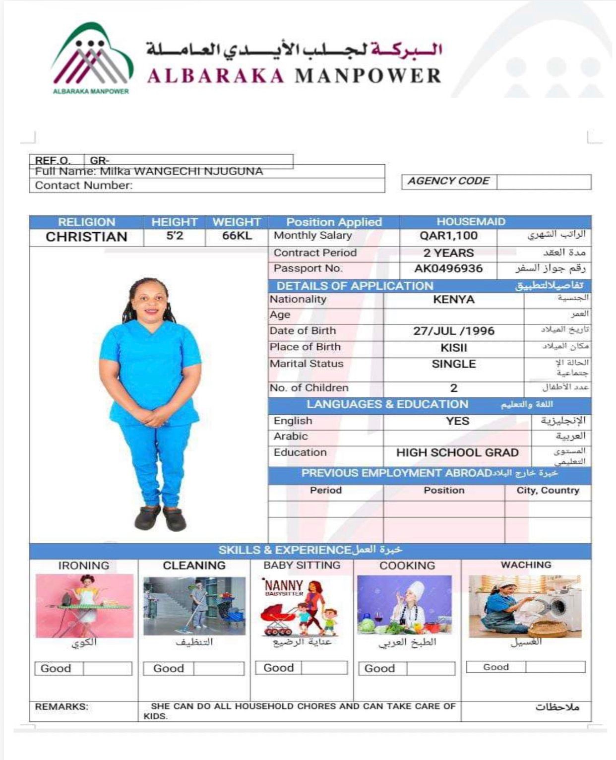 Occupation Domestic worker