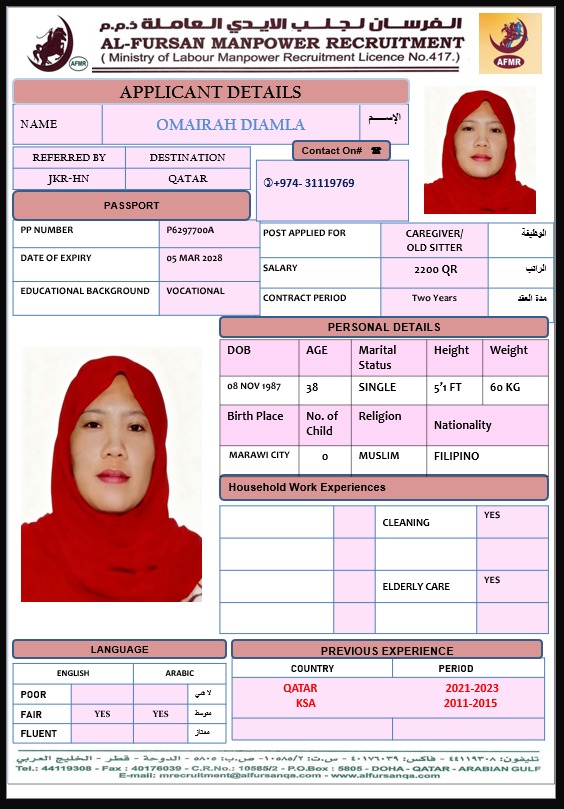 Name - English OMAIRAH DIAMLA