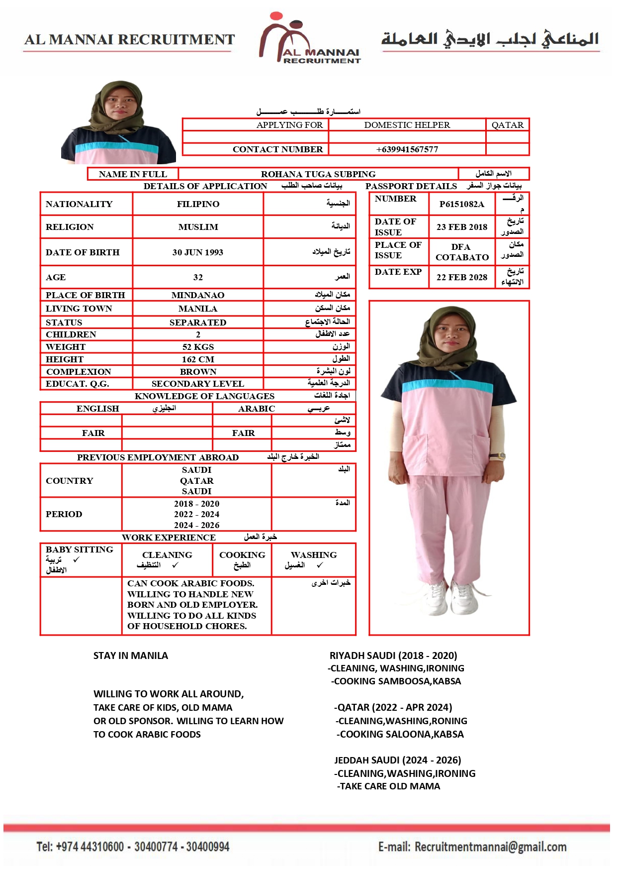 | Salary | 1460 QAR |