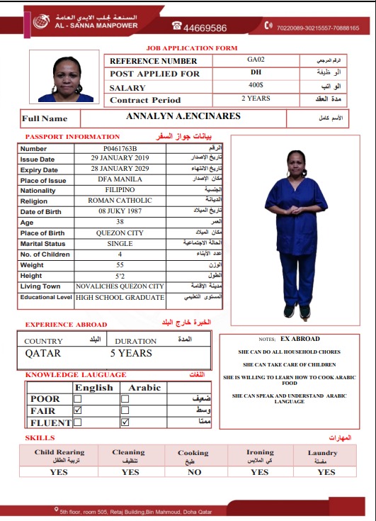 Name - English ANNALYN A. ENCINARES