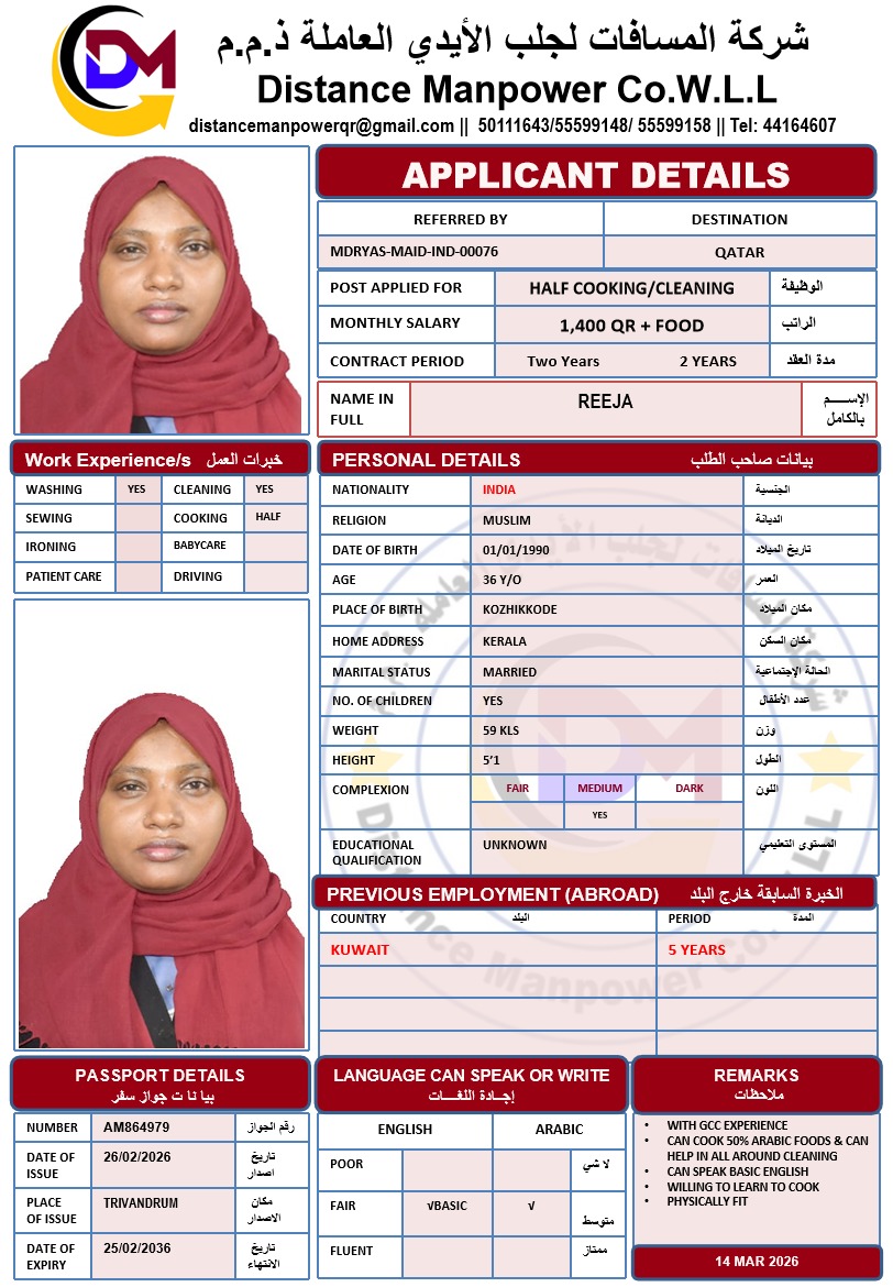 | Salary | 1400 ريال قطري |