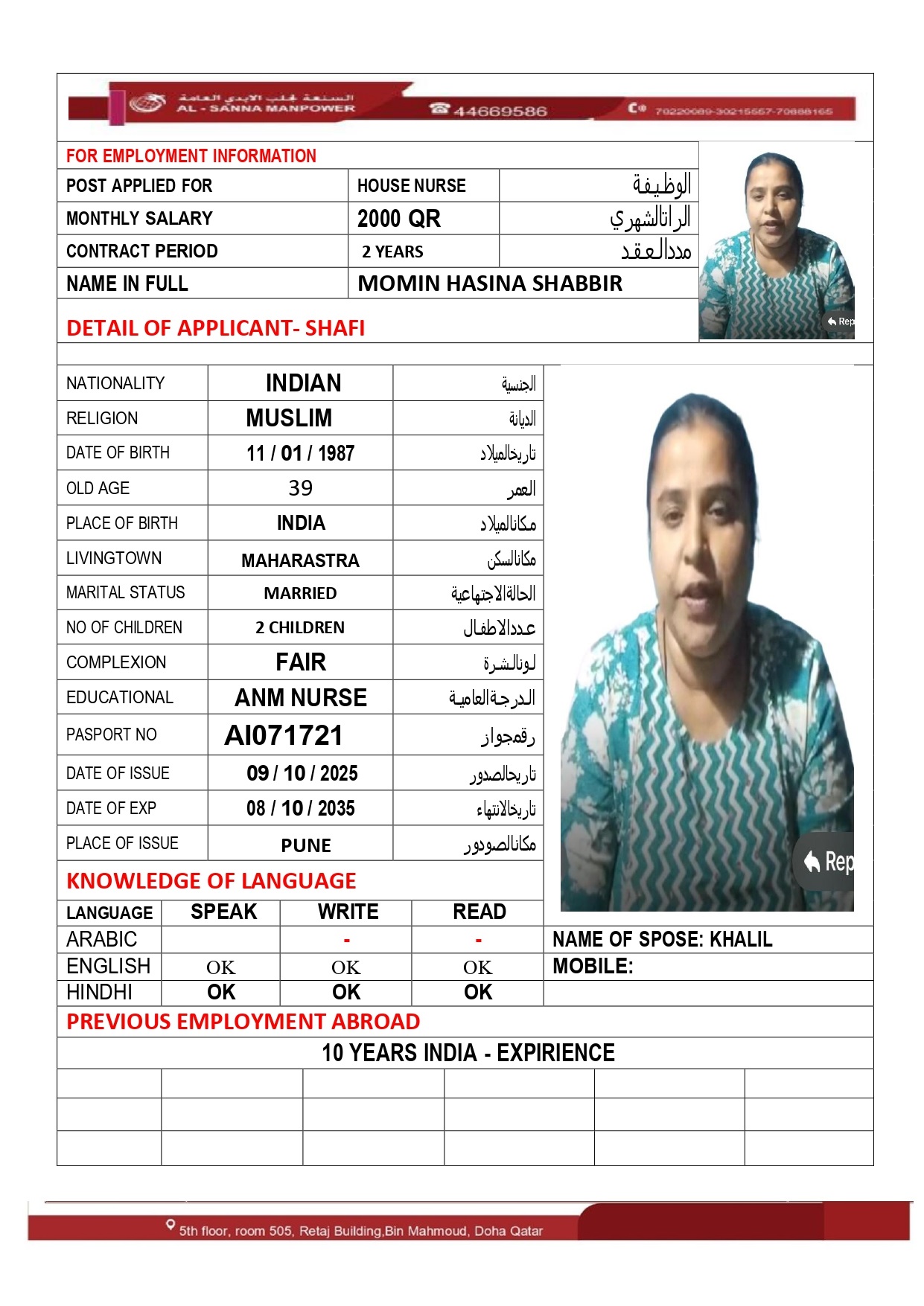 Name - English MOMIN HASINA SHABBIR