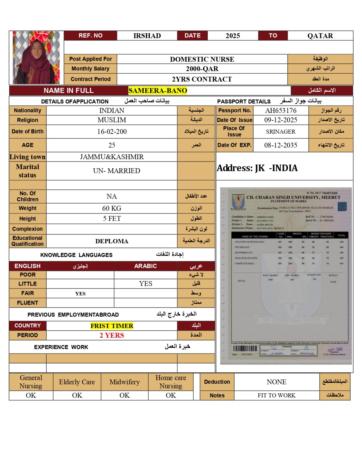 Name - English SAMEERA BANO