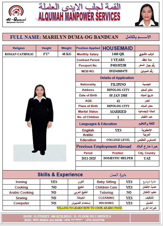 Name - English MARILYN D. BANDUAN