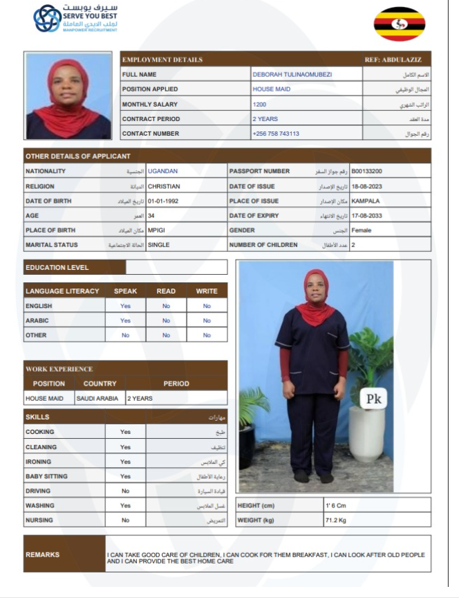 Name - English DEBORAH TULINAOMUBEZI