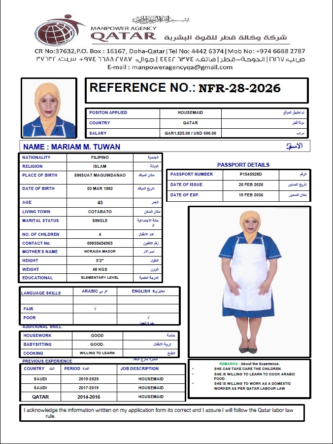 Welcome Are you looking for a driver, nurse, house manager, cleaner, nanny, secretary, professional workers for companies, security and guard personnel, foreman .... etc. Have you spent a long time looking for a maid? Have you made a great effort to find the right person? But to no avail ... Don't worry, we have the perfect solution to your problem Services…