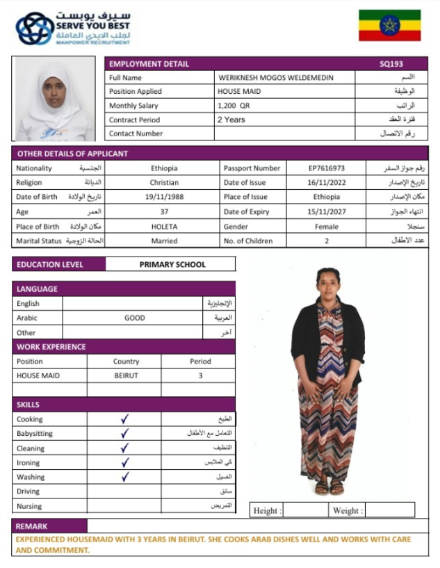 Name - English WERIKNESH MOGOS WELDEMEDIN