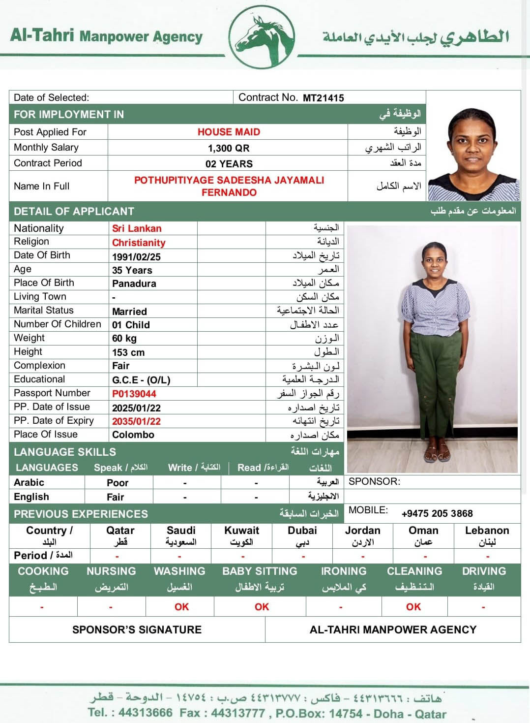 Name - English JAYAMALI FERNANDO