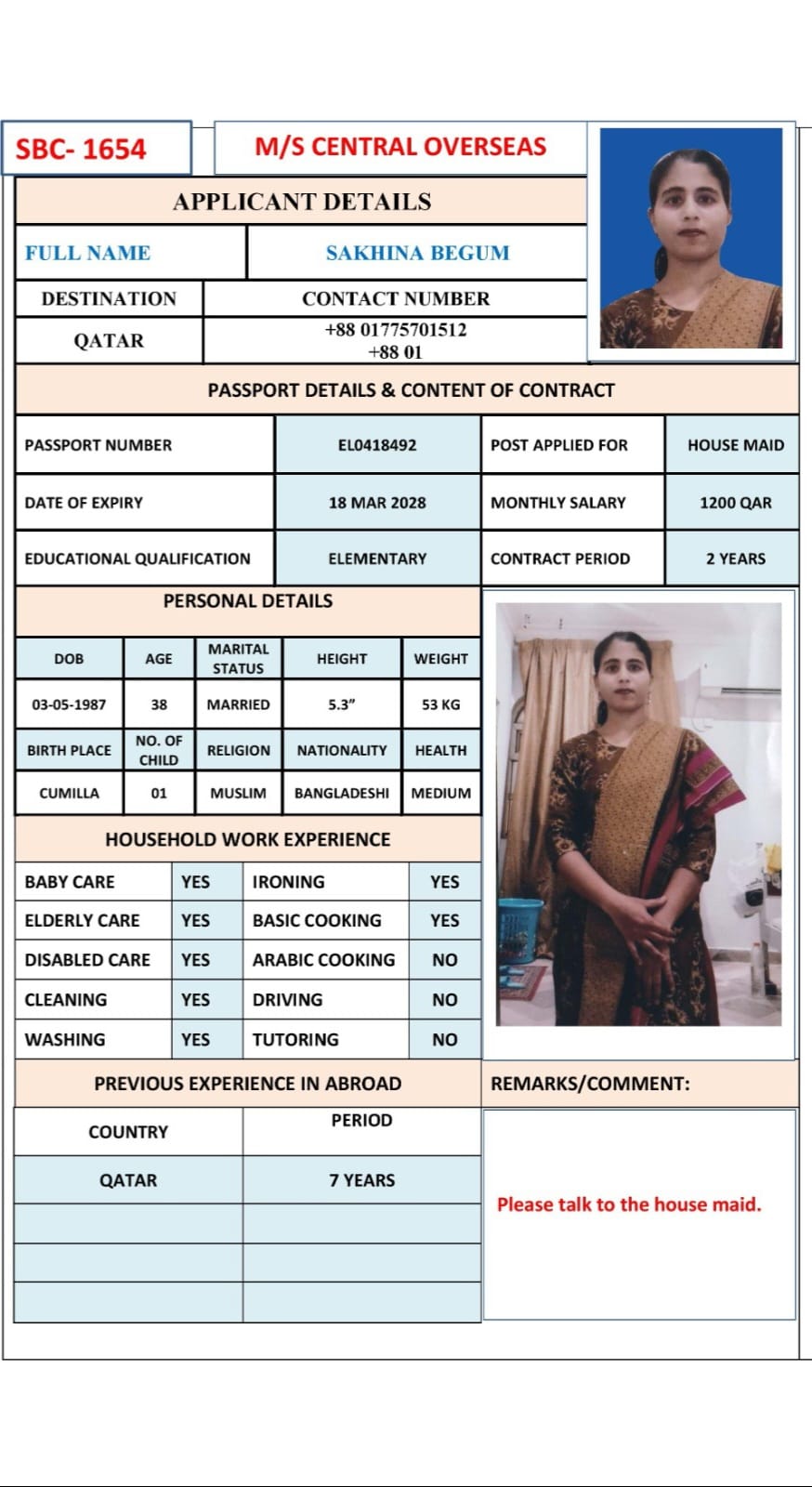 Name - English SAKHINA BEGUM