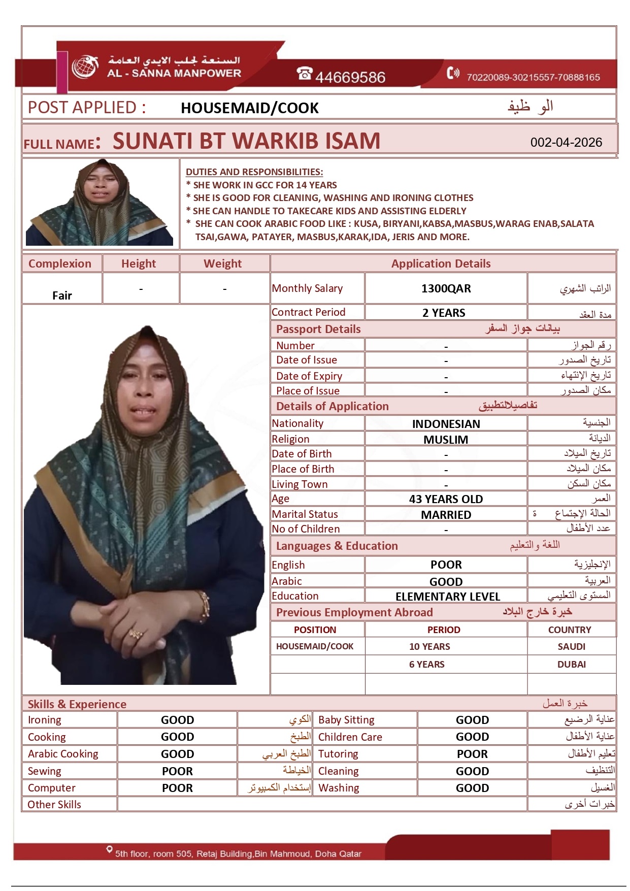 Name - English SUNATI BT WARKIB ISAM