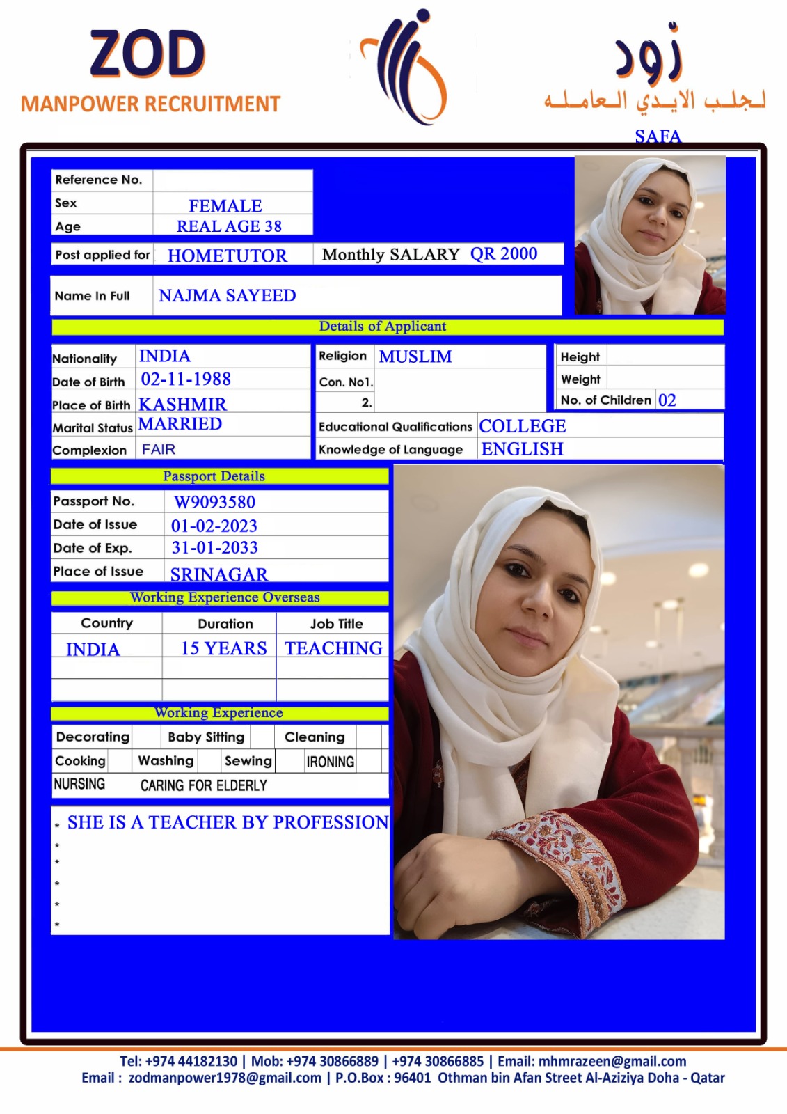 Welcome Are you looking for a driver, nurse, house manager, cleaner, nanny, secretary, professional workers for companies, security and guard personnel, foreman .... etc. Have you spent a long time looking for a maid? Have you made a great effort to find the right person? But to no avail ... Don't worry, we have the perfect solution to your problem Services…