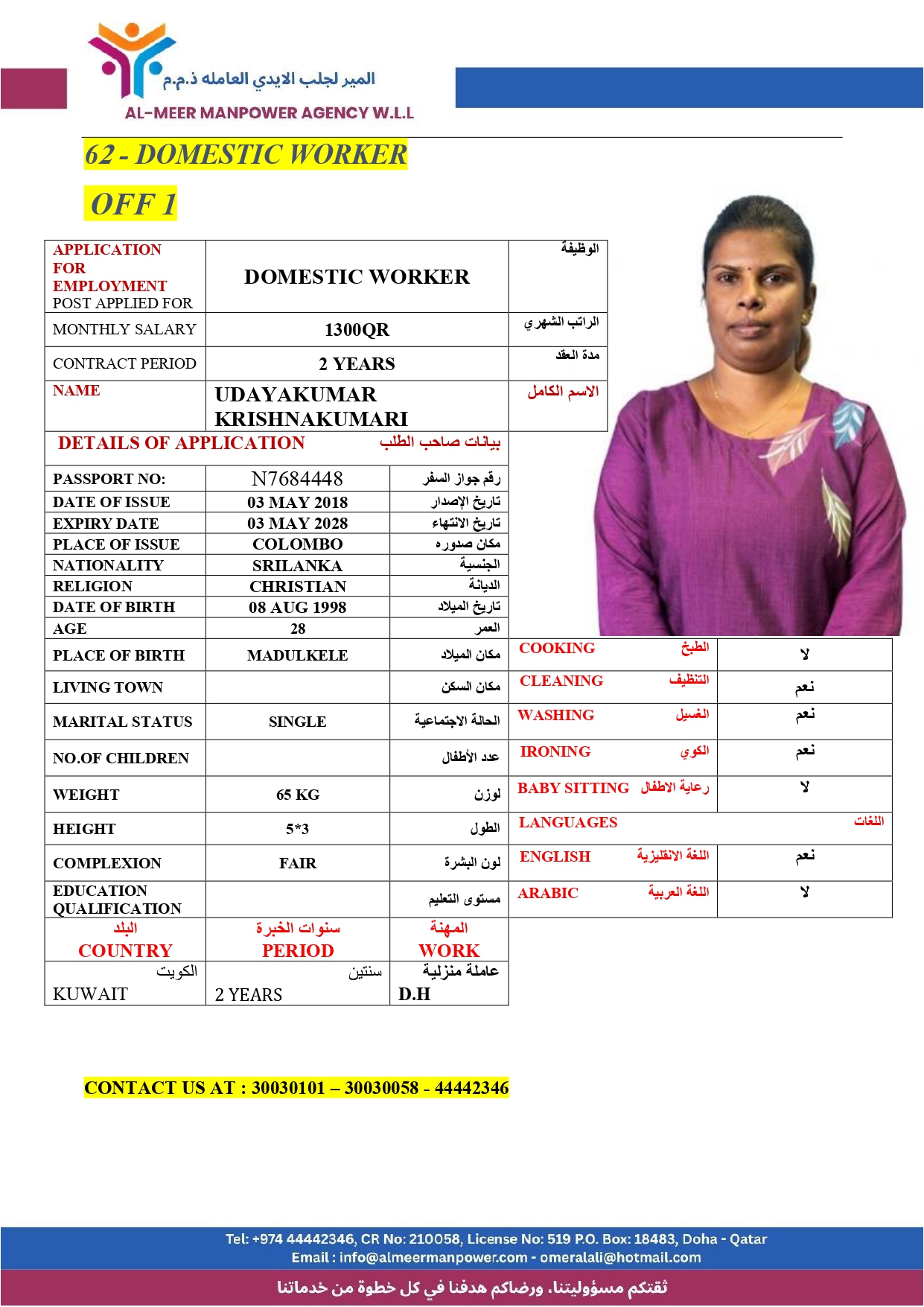 Name - English UDAYAKUMAR KRISHNAKUMARI