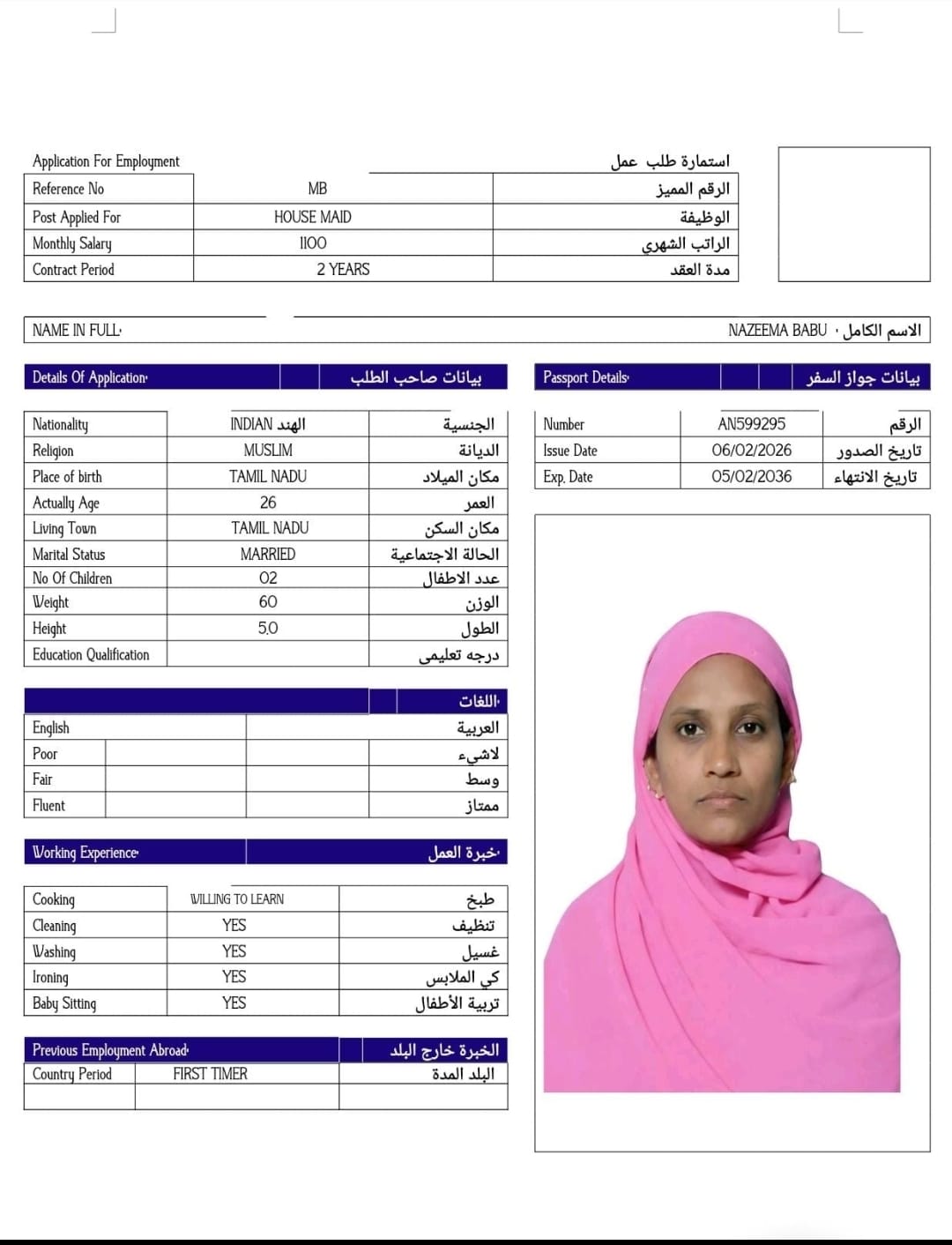 Name - English NAZEEMA BABU / AVAILABLE IN DOHA