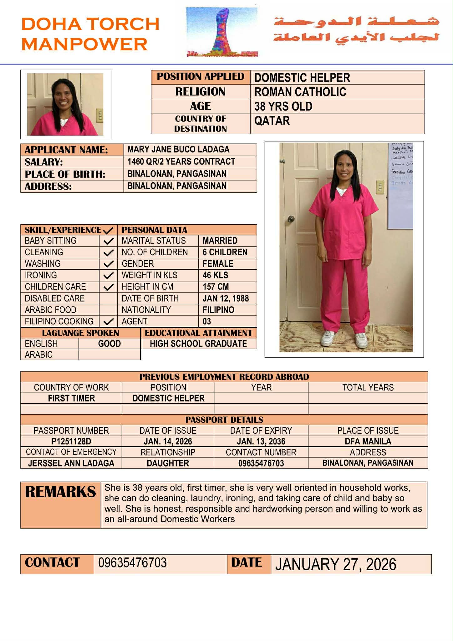 Name - English MARY JANE LADAGA