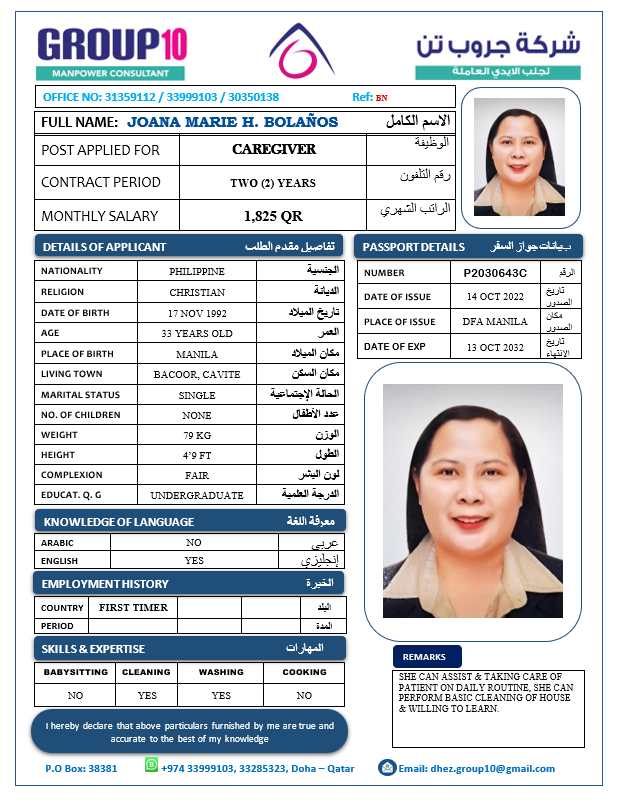 Name - English JOANA MARIE H. BOLAÑOS