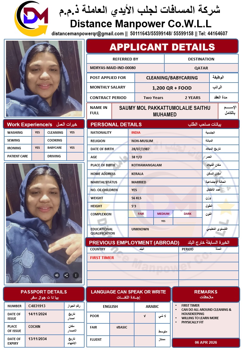 Name - English SAUMY MOL PAKKATTUMOLALIE SAITHU MUHAMED