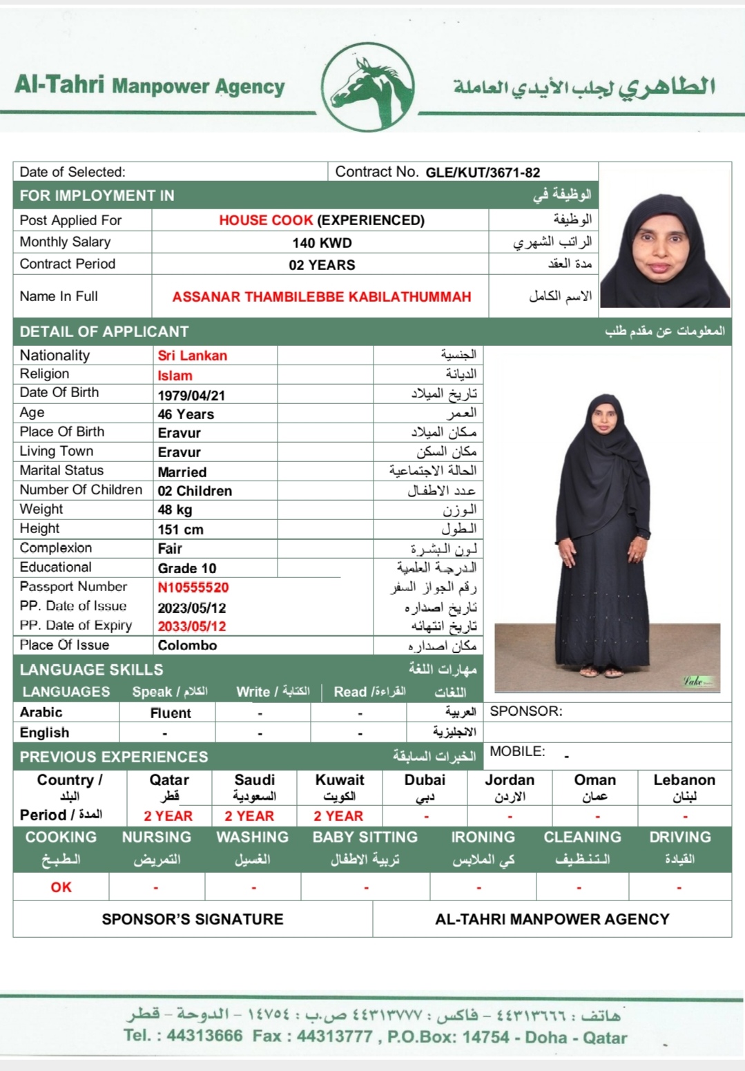 Name - English ASSANAR KABILAT