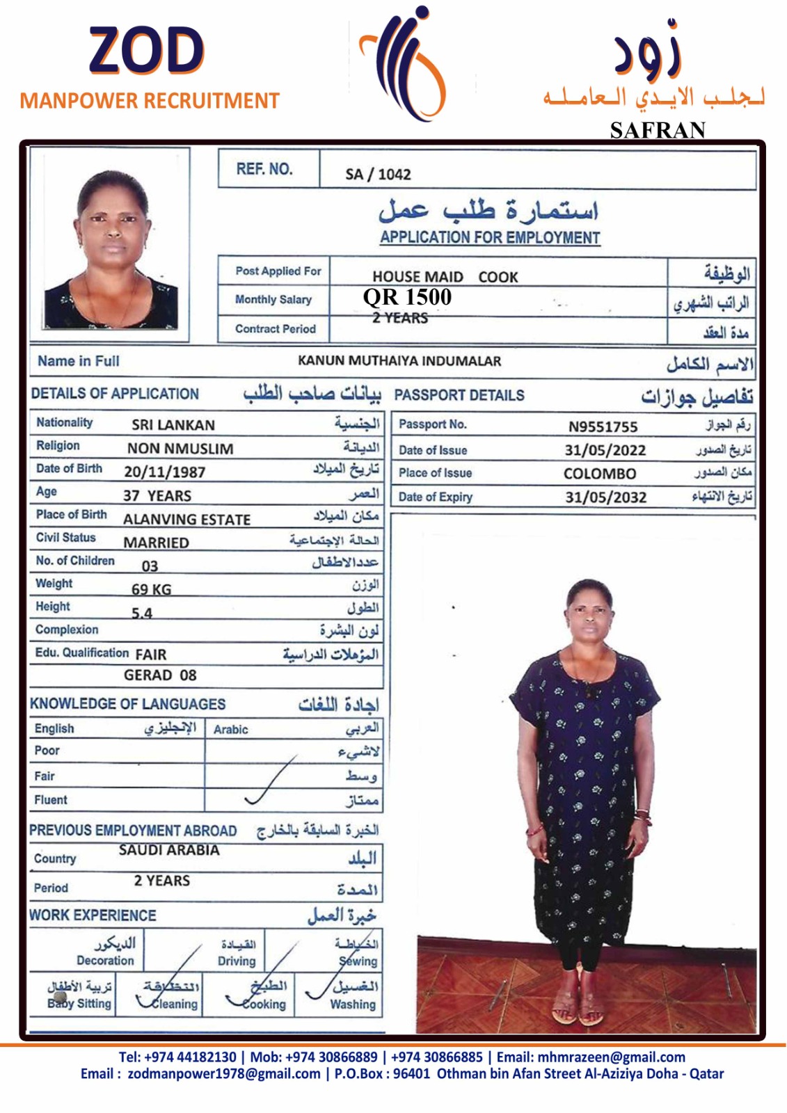 Salary 1500 QAR